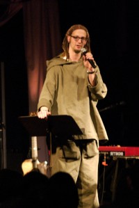 He continued on his testimony, talking about how he went to work with Mother Teresa, and how he and some friends started an organization called “The Simple Way”, which is where he lives and works today. (You can find out more about it here: http://www.thesimpleway.org/ .) He talked about how he went to Iraq during the war with some other people from the Iraq Peace Team, and was there on the ground when the “shock and awe” bombs fell, and how he and his friends saw innocent civilians die. One Iraqi man, with tears in his eyes, said “This violence is for people who have lost their imagination.” (to read more about Shane Claiborne in Iraq and how his experience is still helping him to change the world, check out http://www.huffingtonpost.com/shane-claiborne/jesus-bombs-and-ice-cream_b_922149.html). Shane had began to experience that maybe what Jesus said He really meant. That another world is possible, and that His kingdom, a kingdom of love to all, could indeed be realized here and now. That church is about living the reality that Jesus showed us, and not just about sitting in a building talking about it.