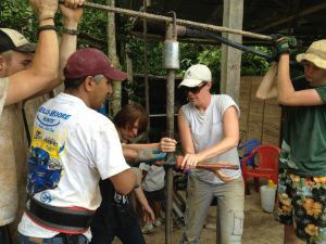 The day was already sticky and hot, and it wasn’t even 9am yet.  We slathered on the sunscreen, mixing it on our already-sweaty arms and legs.  Today was the day of the first well-dig, and we were ready to get it on.  What followed in the coming days was a beautiful dance of digging, drilling, pumping and sealing.  But today would be our first water-well out of 5 that we would have the honor of bringing to families and neighborhoods.